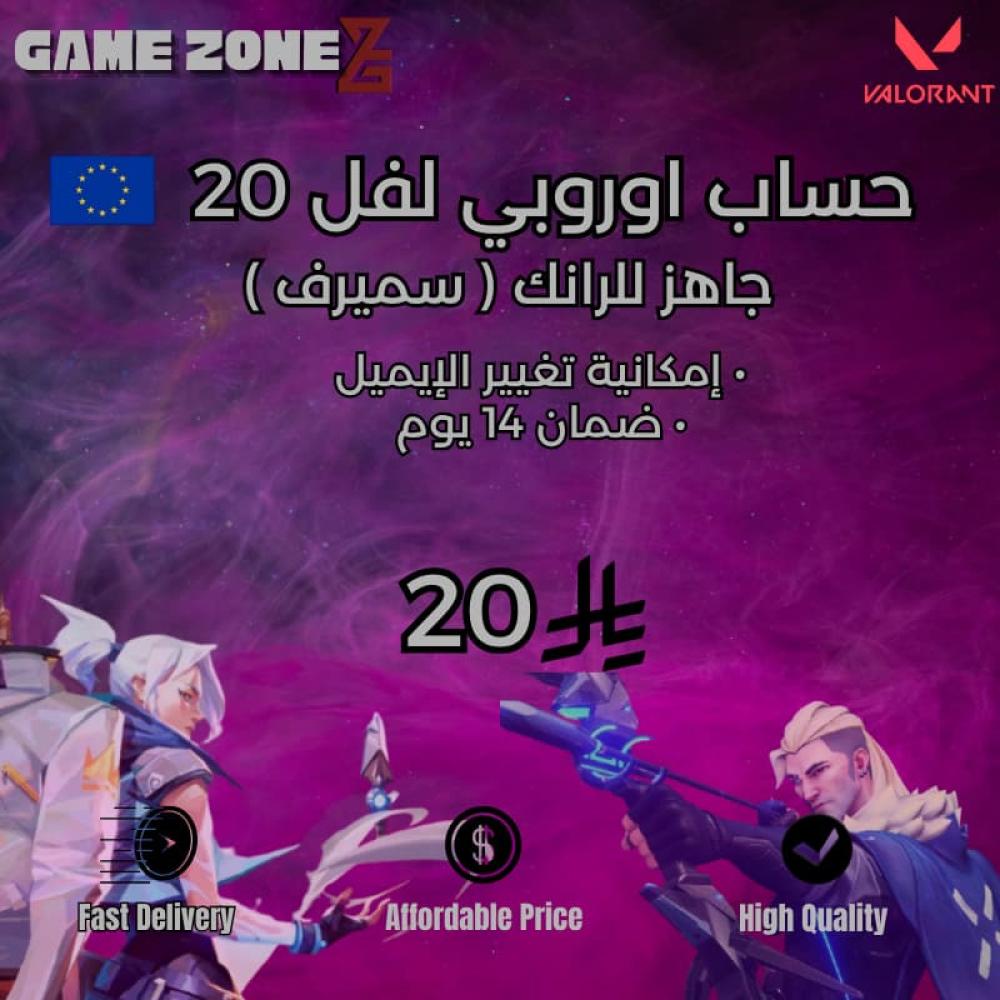 🎯 حساب فالورانت أوروبي لفل 20 – جاهز للرانك (سميرف)